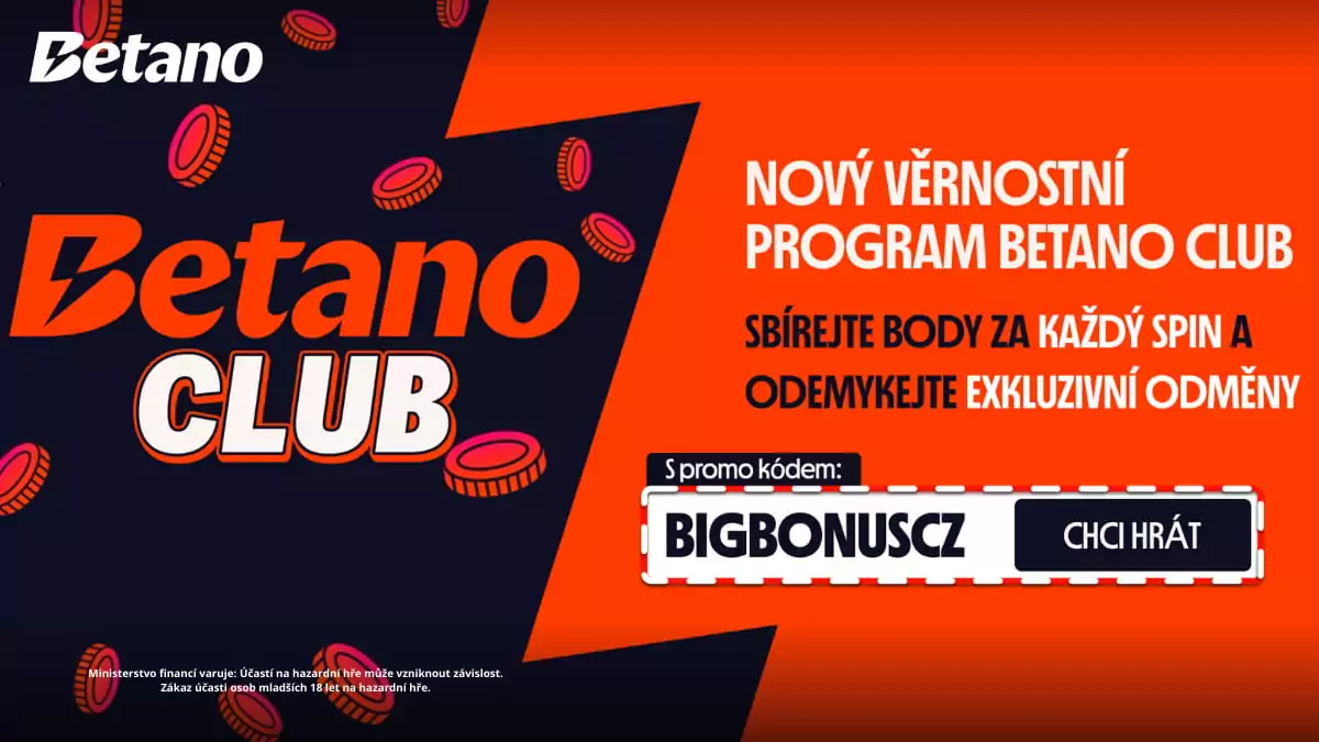 Tip redakce: Při registraci doporučujeme zadat Betano promo kód „BIGBONUSCZ“. Díky němu si kromě členství v klubu odemknete i exkluzivní vstupní bonusy, jako je například sázka zdarma.