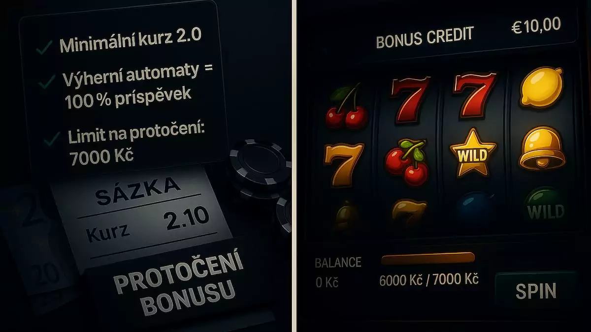 - Porovnávejte nabídky: Menší bonus s mírnou podmínkou (např. 10×) je často výhodnější než obří bonus s přísnými pravidly (např. 50×).